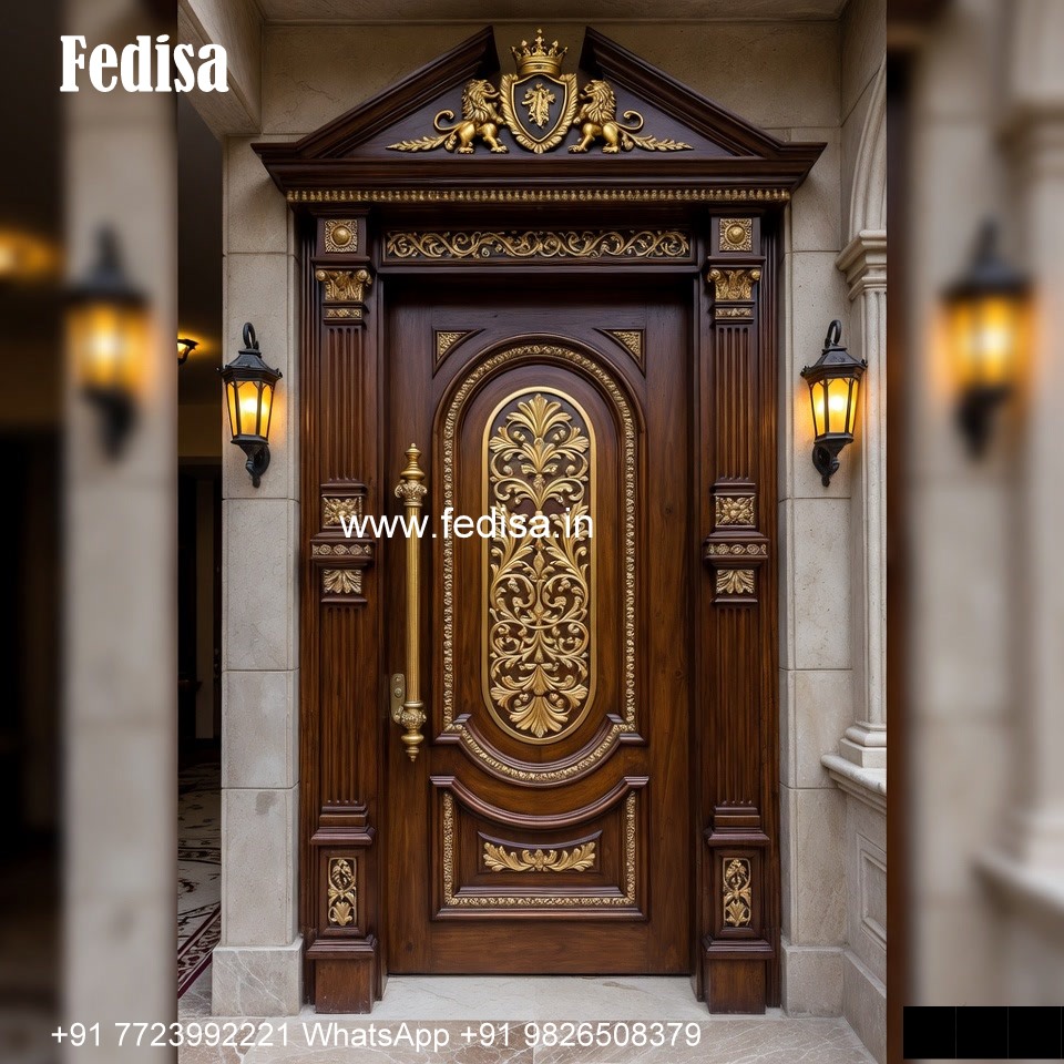 Front Entrance Classic Door Teak Wood Pooja Door Design No-1344